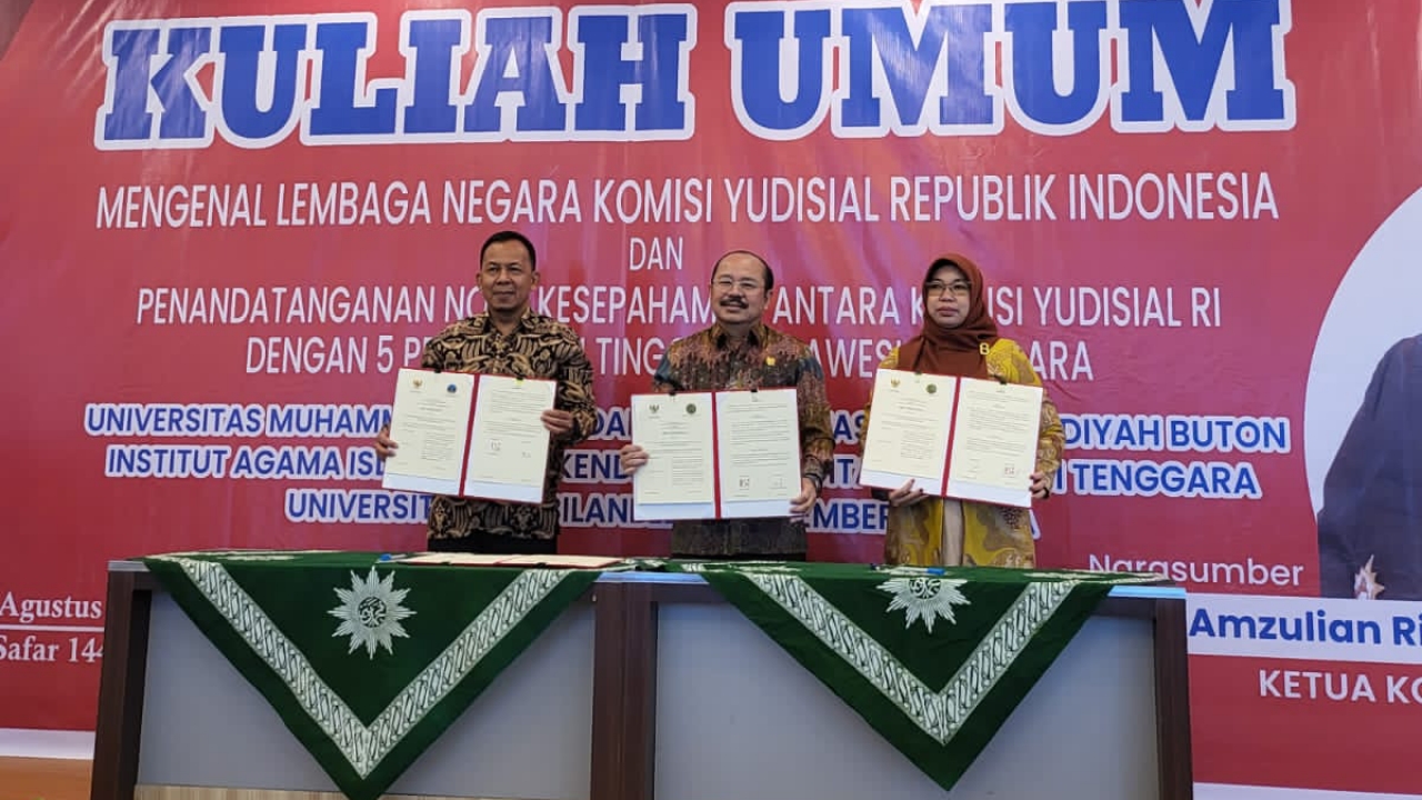 Kendari, 4 September 2023 -Pada kesempatan kuliah umum yang diselenggarakan di kendari tepat pada tanggal 4 september kemarin terkait lembaga Negara Komisi Yudisial Republik Indonesia (KYRI) yang di dihadiri langsung oleh Gubernur Sulawesi Tenggara, para rektor dari lima perguruan tinggi salah satunya Universitas Sembilanbelas November (USN) Kolaka, serta dibuka langsung oleh Ketua Komisi Yudisial RI, Prof. Amzulian Rifai, terdapat beberapa hal terpenting dalam kuliah umum tersebut bertujuan untuk meningkatkan pemahaman masyarakat dan akademisi mengenai peran dan fungsi Komisi Yudisial dalam sistem peradilan di Indonesia.Menyampaikan bahwa kita harus saling berdiskusi bagaimana kita membangun integritas peradilan dalam konstitusi tugas komisi yudisial menjaga martabat dan marwah perilaku hakim salah satunya melakukan pengawasan.